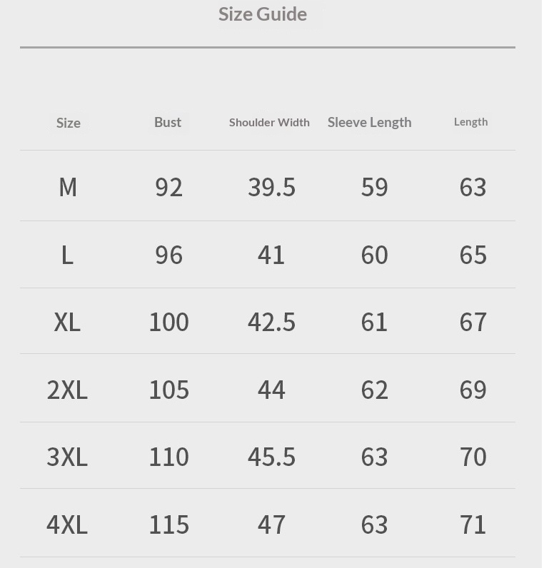 Sizes: M, L, XL, 2XL, 3XL, 4XL